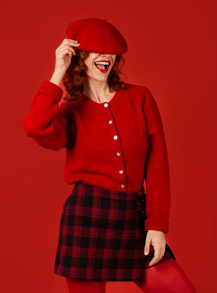 Использование единой цветовой палитры позволяет клетчатому узору стать выразительным акцентом, придающим образу глубину.