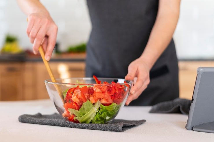 Для придания салатам более насыщенного вкуса можно использовать тертый хрен, перец чили или чеснок.
